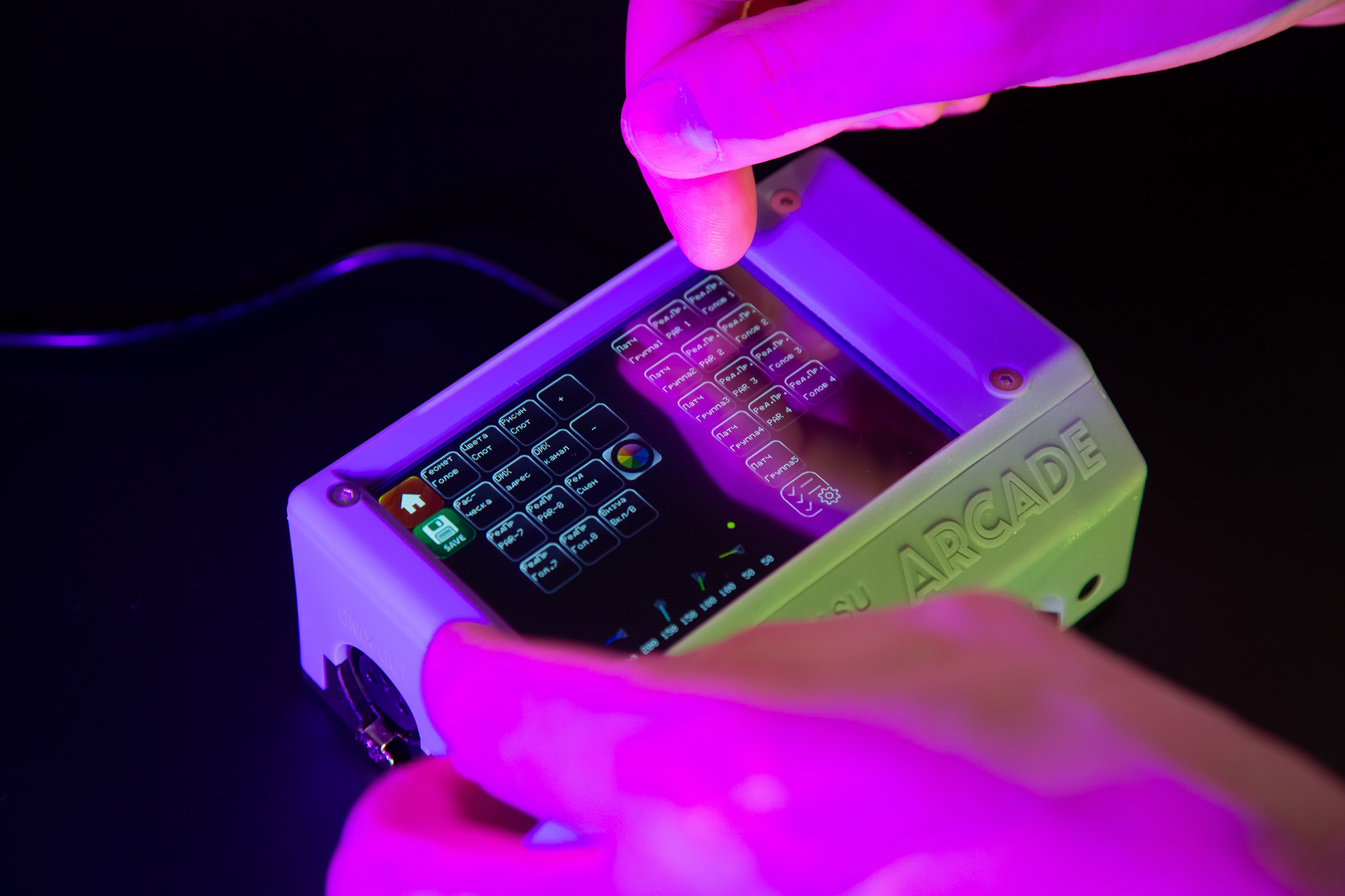 - Интерфейс пользователя. Современные пульты DMX оснащены различными интерфейсами, такими как кнопки, экранные меню / сенсорные панели. Это позволяет операторам легко управлять настройками и сценариями;
