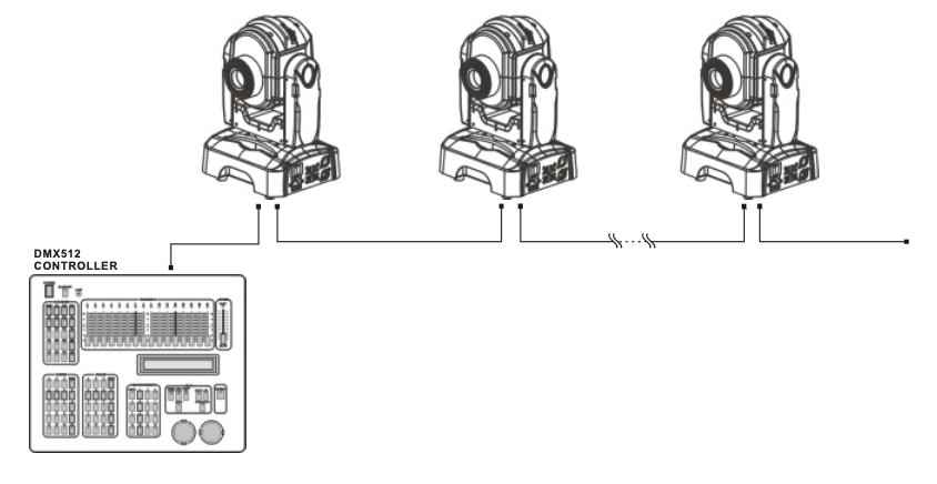 - Подключение и коммутация. Пульты управления DMX сигналом подключаются к осветительным приборам через стандартные DMX-кабели (обычно это XLR-3 либо XLR-5 разъемы). Они могут управлять приборами по цепочке, что упрощает их установку и конфигурацию;